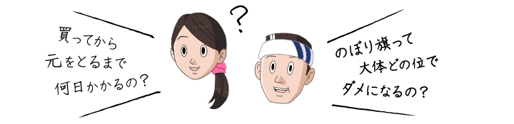 通常、のぼり旗の寿命は3~6ヶ月といわれています。6ヶ月後、ボロボロになるまで使ったとしても返金されるので、あなたにとってリスクはありません。