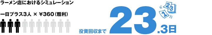 ※平均客単価600円、原価率40%一人あたりの粗利360円、一日プラス3人の集客と仮定して計算。